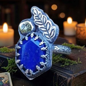 Bague « Bleu lapis » en argent, bronze et lapis lazuli