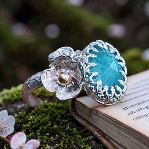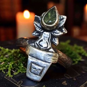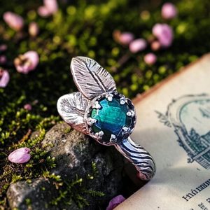 Bague « Magie végétale » réglable en argent, bronze et malachite