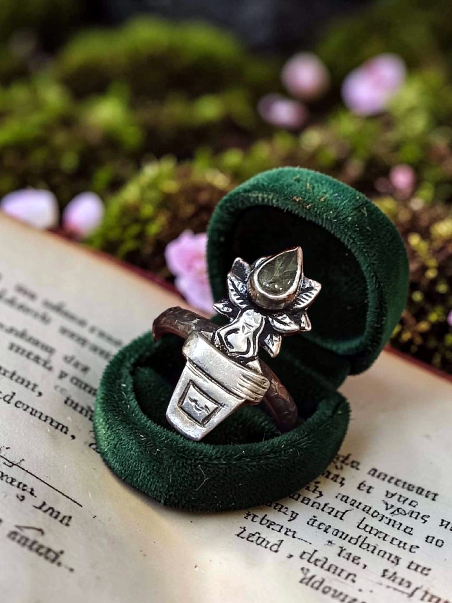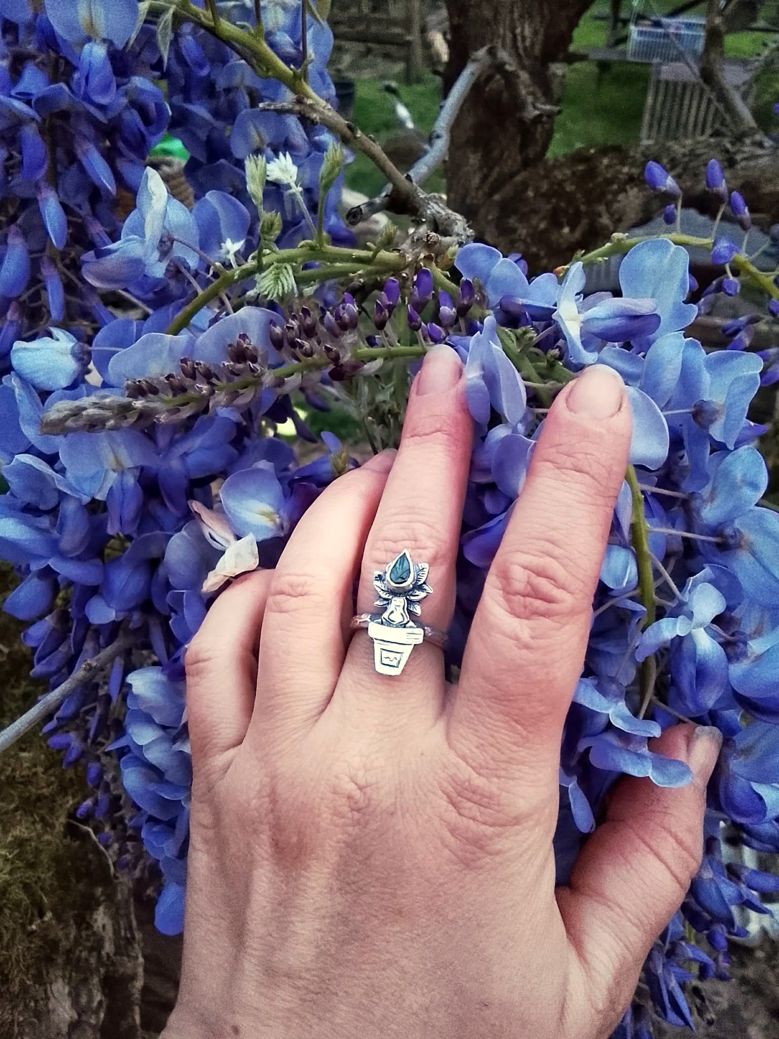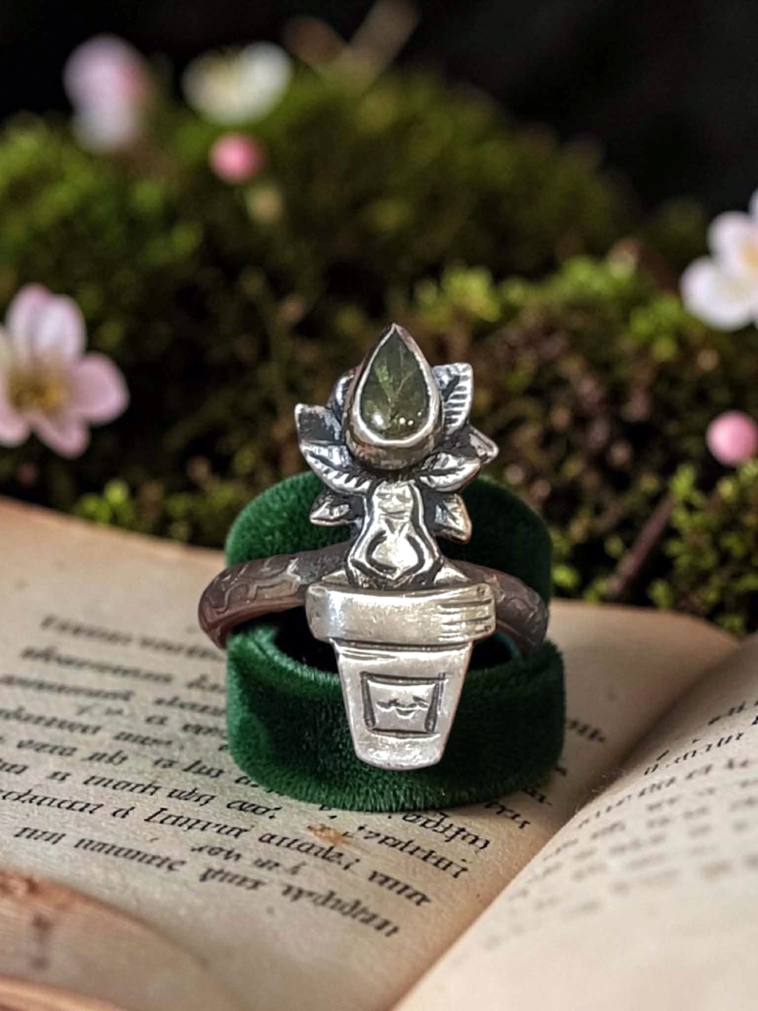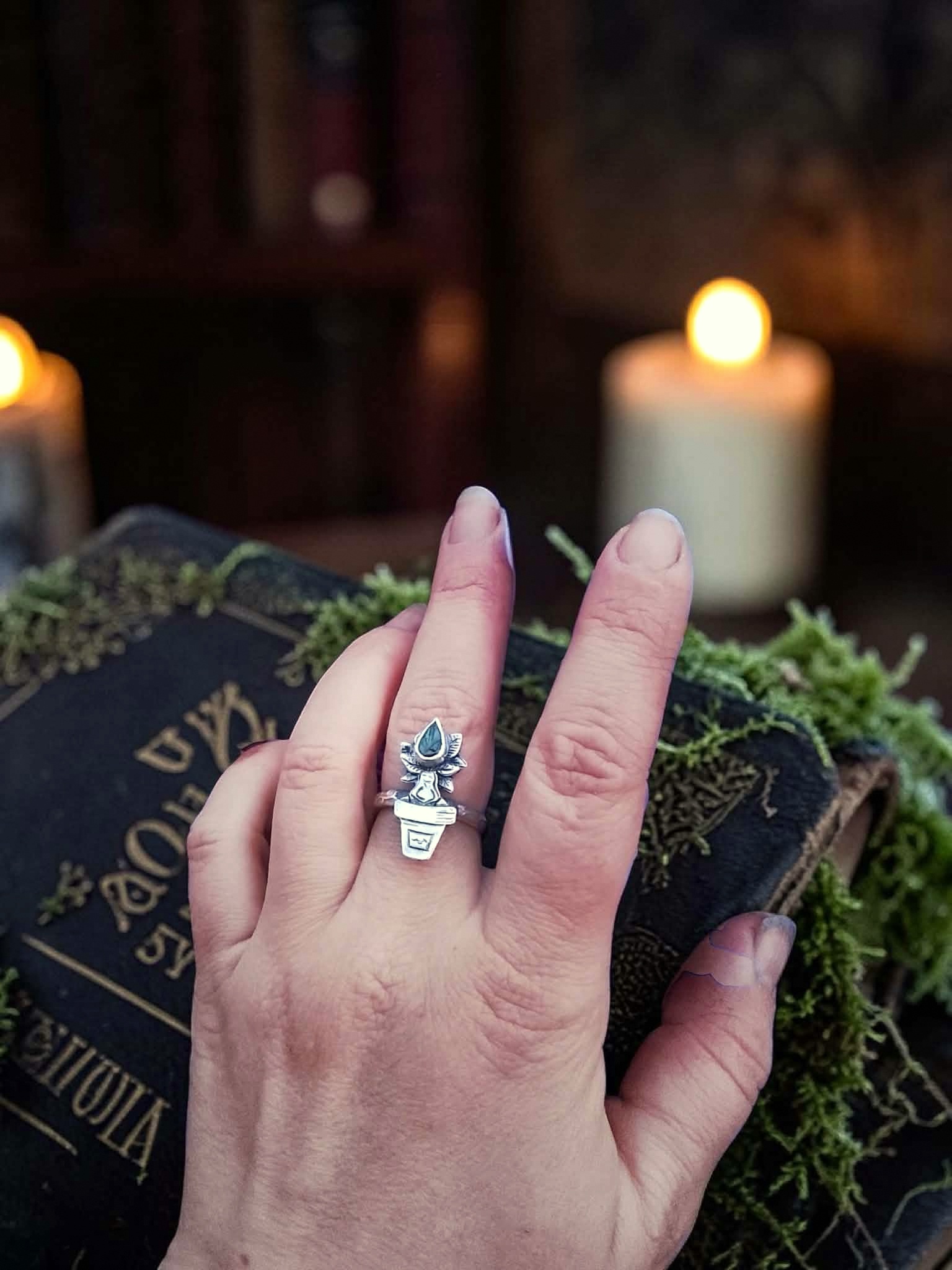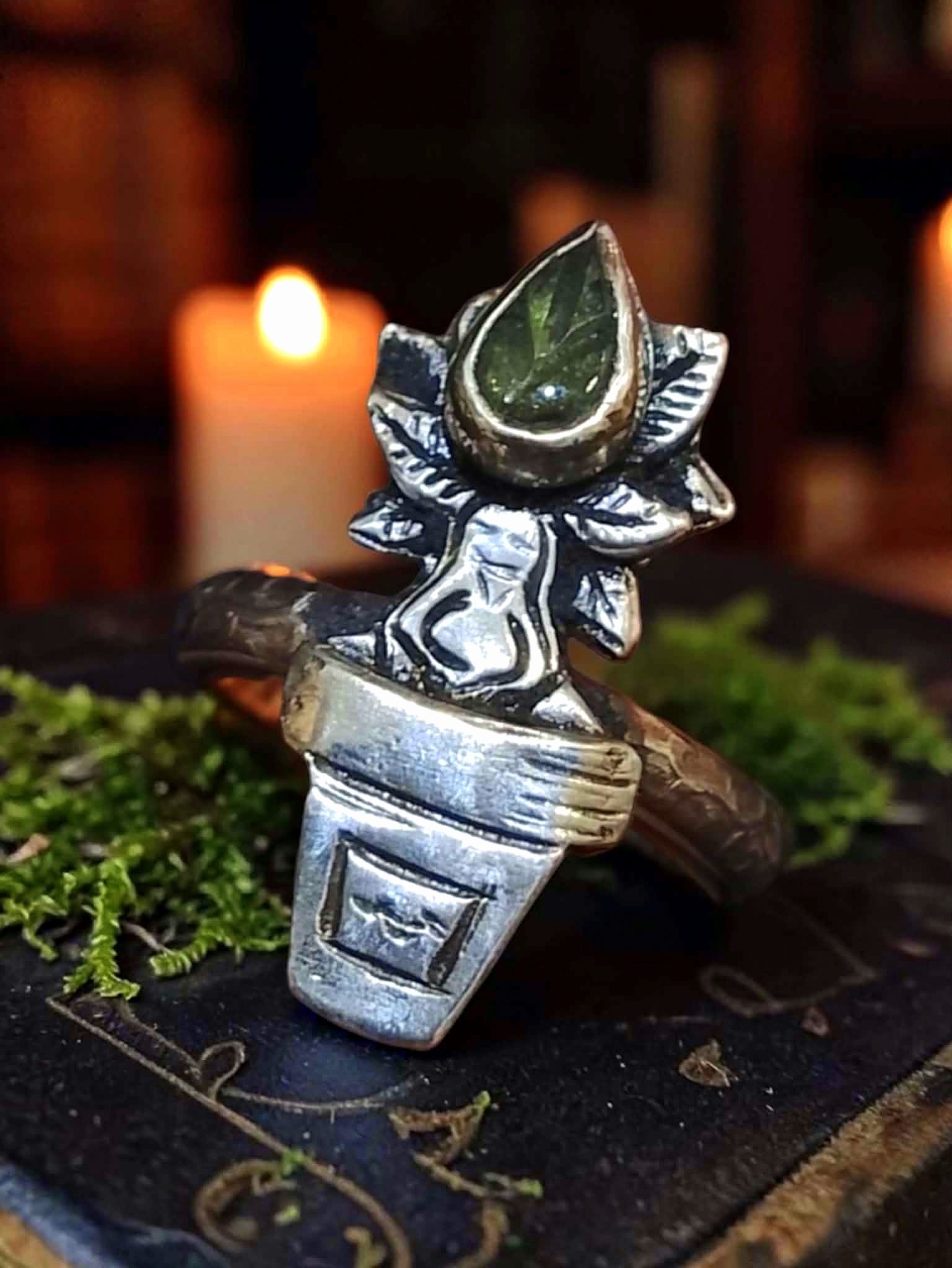 Bague réglable « Mandragore » en argent ciselé et sa tourmaline serti à la main.