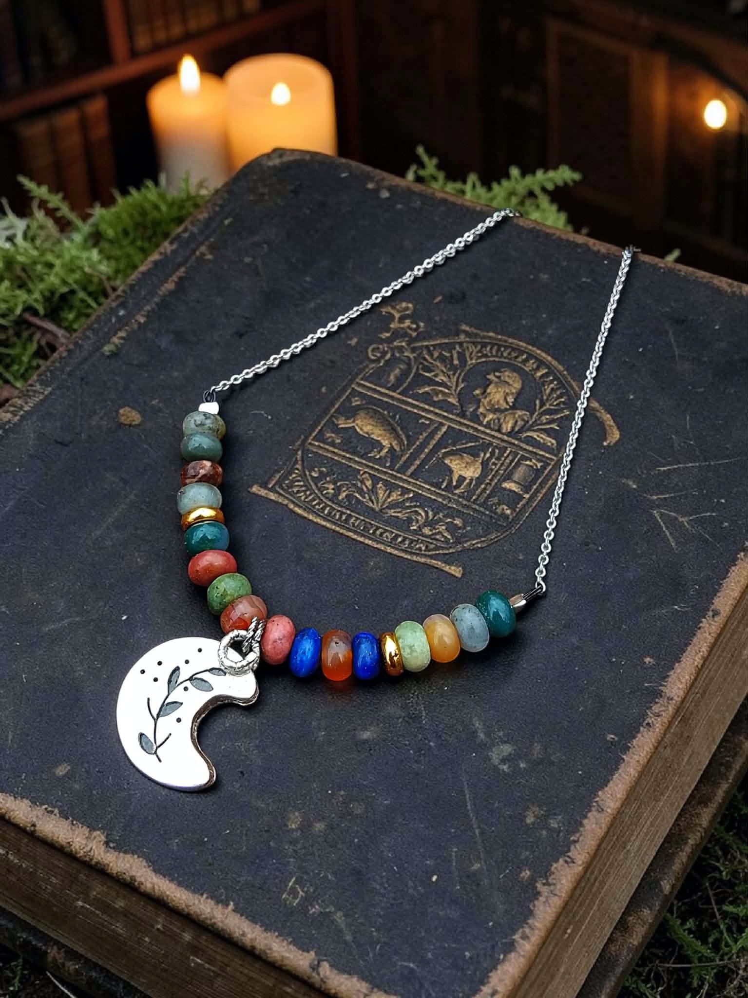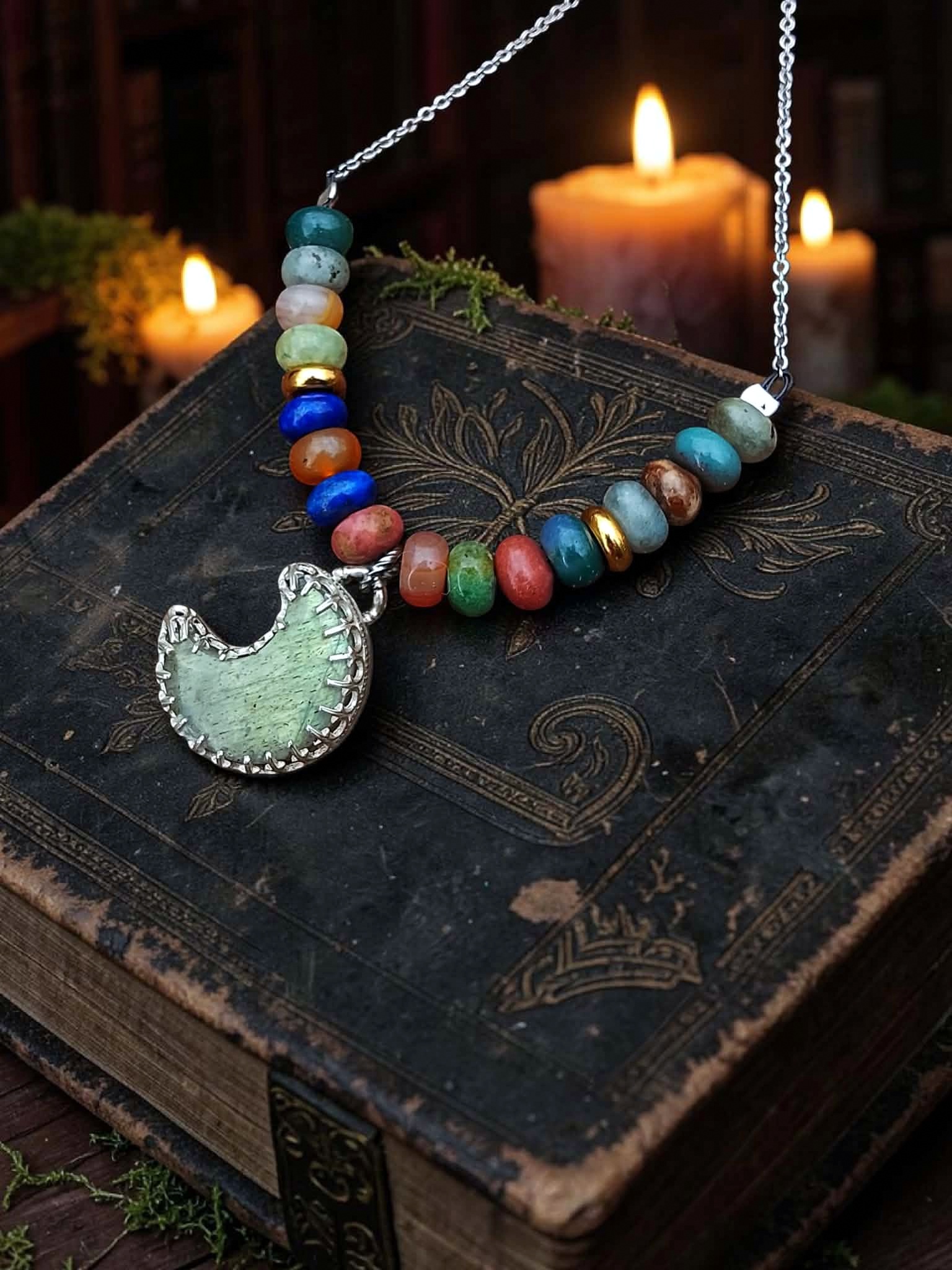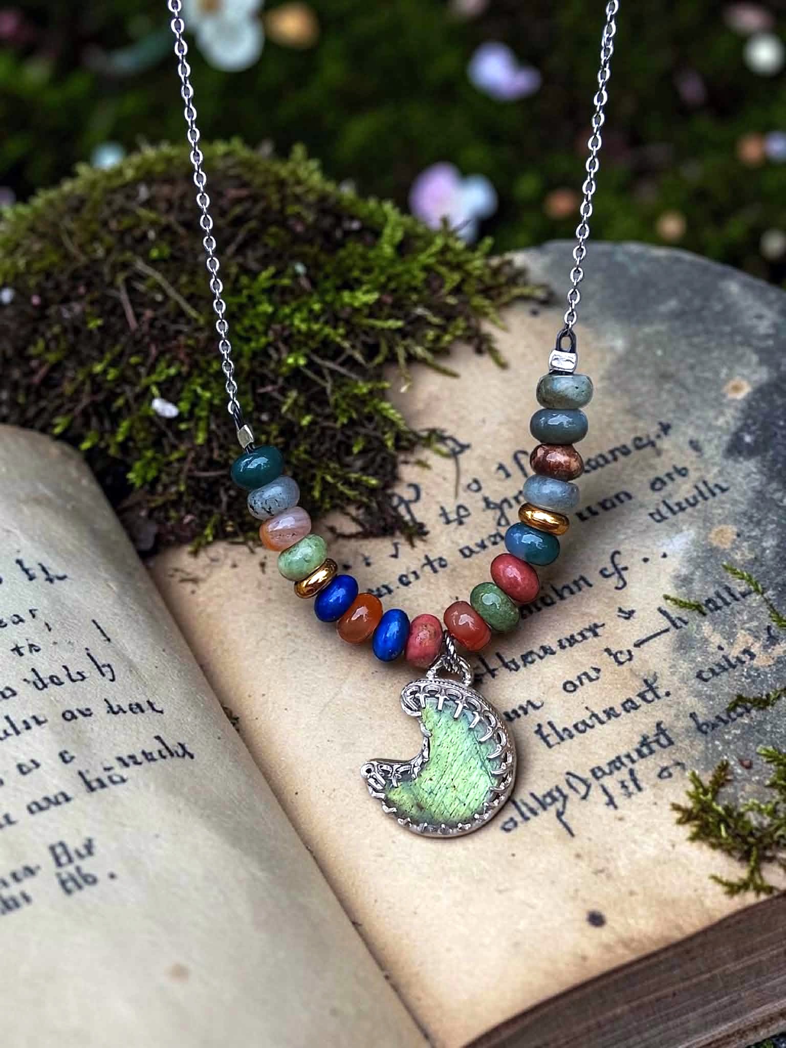 Collier « Jardin de lune » en argent, labradorite et pierres véritables