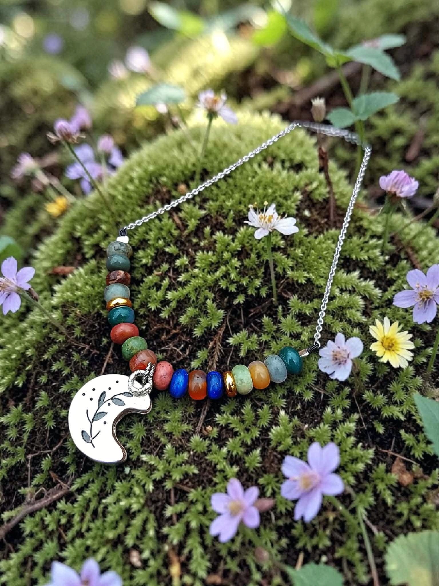 Associée à sa lune en labradorite, le tout ciselé avec plein de sentiments, vous obtenez un pendentif en pièce unique, en argent au message bienveillant à offrir ou à s’offrir ❤️🌱
